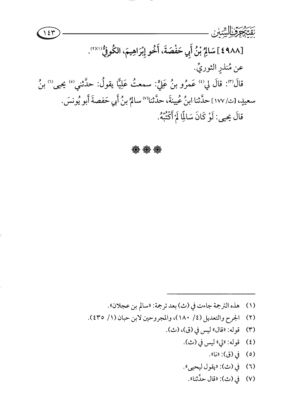 قالَ يحيى: لَوْ كَانَ سَالِمًا لَمْ أَكْتُبْهُ.