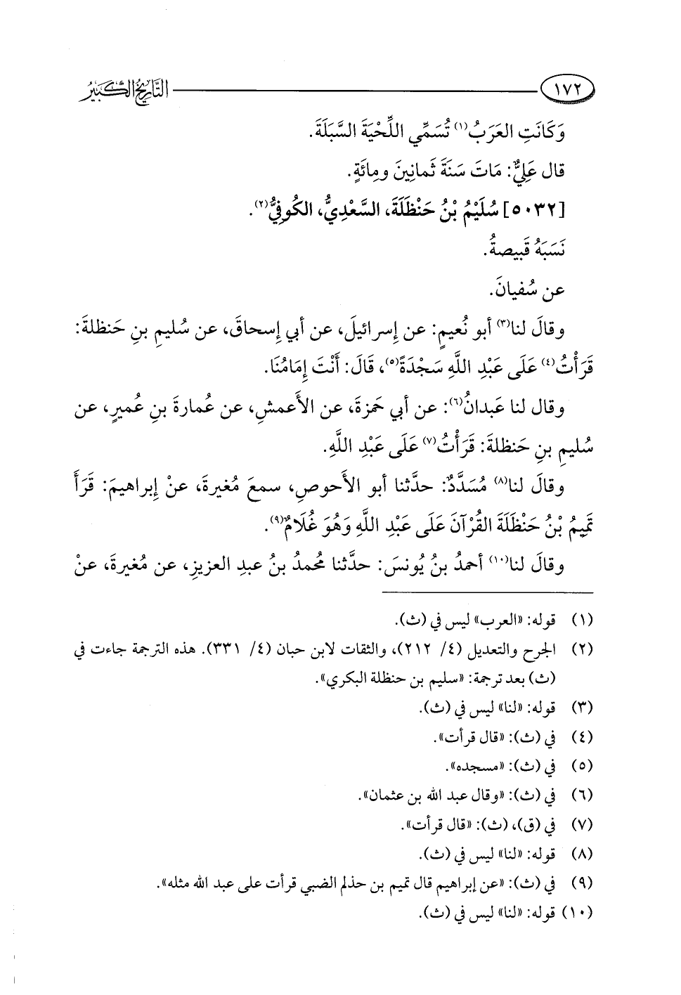 (¬٢) الجرح والتعديل (٤/ ٢١٢)، والثقات لابن حبان (٤/ ٣٣١). هذه الترجمة جاءت في (ث) بعد ترجمة: "سليم بن حنظلة البكري".