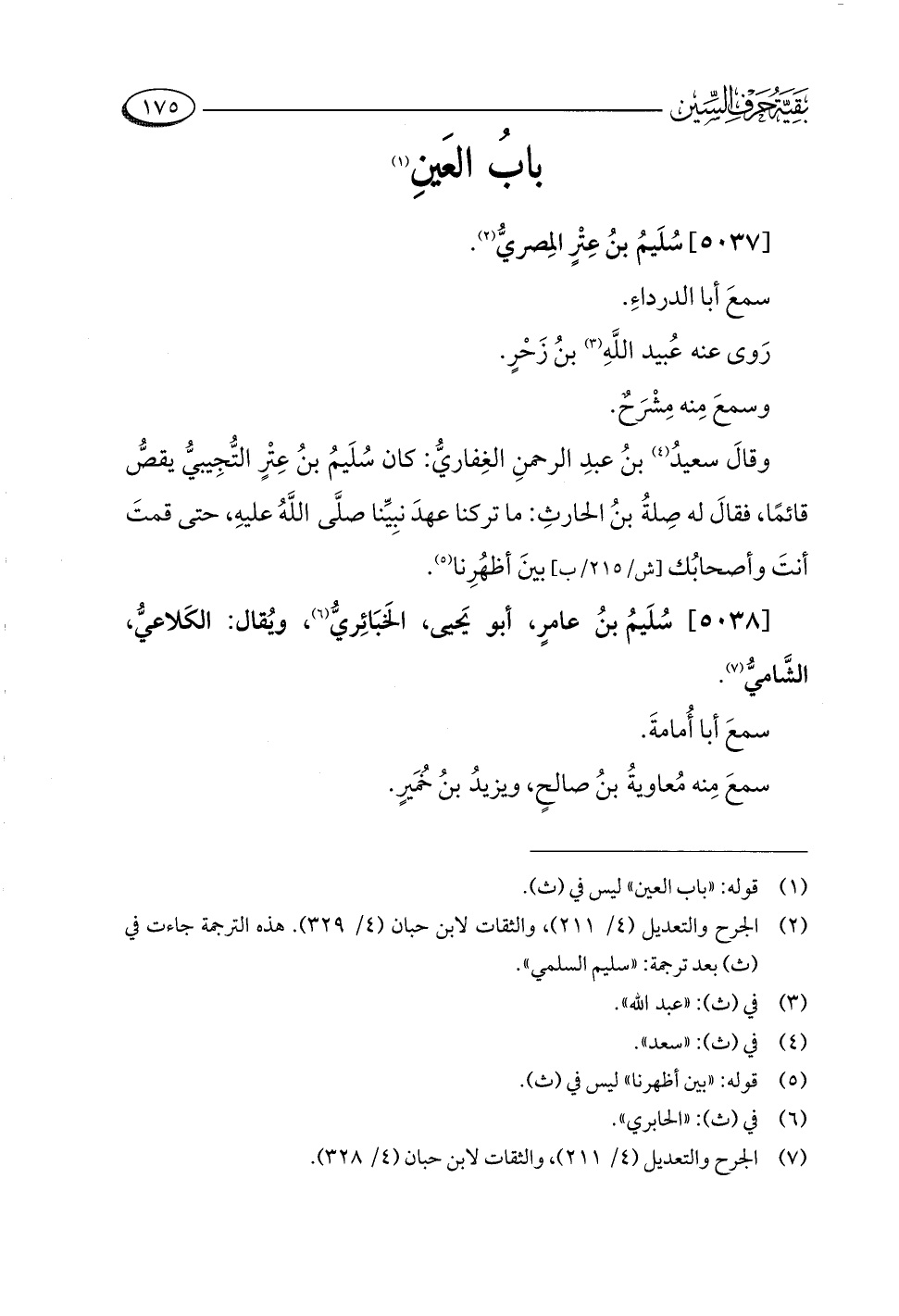 (¬٢) الجرح والتعديل (٤/ ٢١١)، والثقات لابن حبان (٤/ ٣٢٩). هذه الترجمة جاءت في (ث) بعد ترجمة: "سليم السلمي".