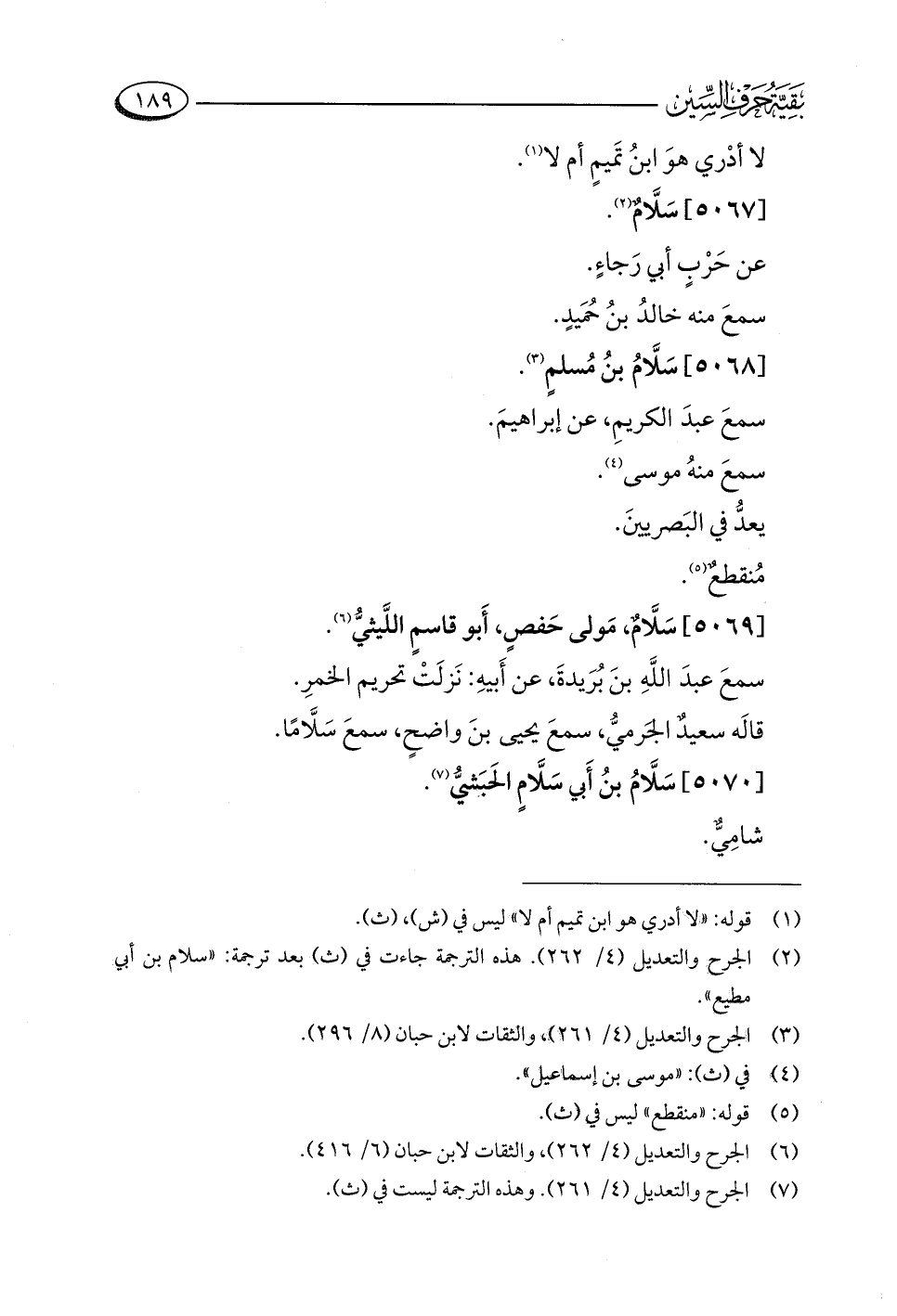 (¬٢) الجرح والتعديل (٤/ ٢٦٢). هذه الترجمة جاءت في (ث) بعد ترجمة: "سلام بن أبي مطيع".