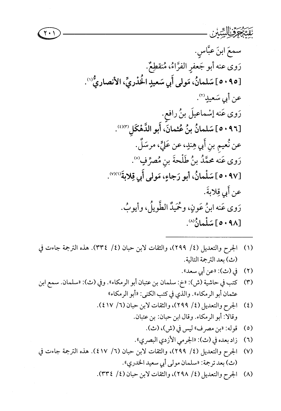 (¬٧) الجرح والتعديل (٤/ ٢٩٩)، والثقات لابن حبان (٦/ ٤١٧). هذه الترجمة جاءت في (ث) بعد ترجمة: "سلمان مولى أبي سعيد الخدري".