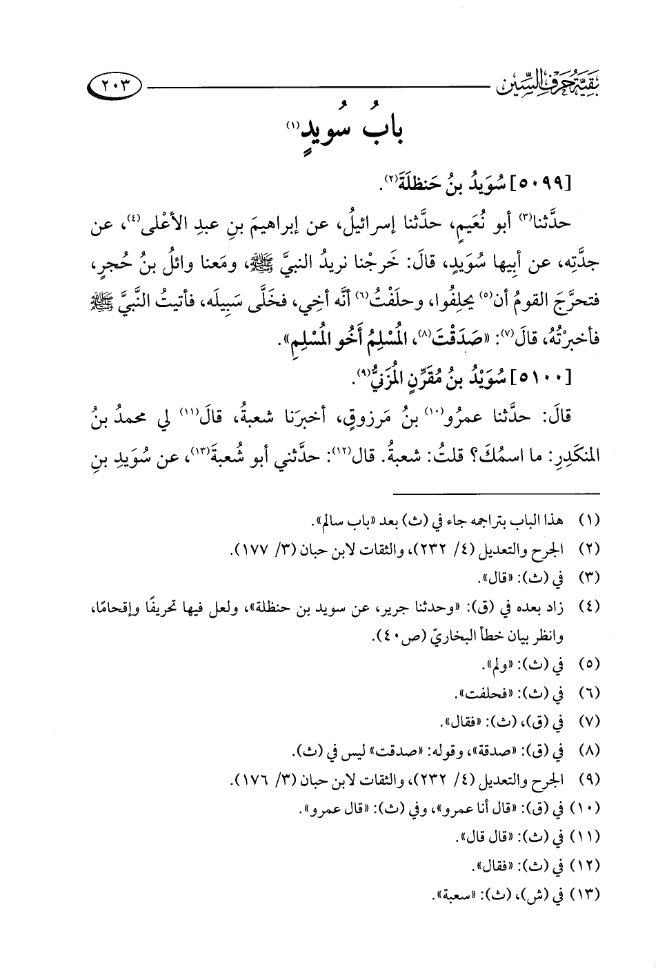 قالَ: حدَّثنا عمرُو (¬١٠) بنُ مَرزوقٍ، أخبرَنا شعبةُ، قالَ (¬١١) لي محمدُ بنُ المنكَدِرِ: ما اسمُكَ؟ قلت: شعبةُ. قال (¬١٢): حدَّثني أبو شُعبةَ (¬١٣)، عن سُوَيدِ بنِ