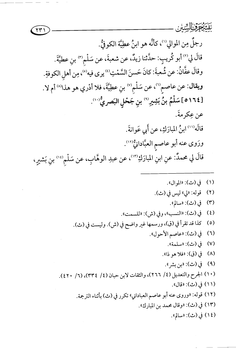قالَ لي محمدٌ: عنِ ابنِ المبارَكِ (¬١٣)، عن عبدِ الوهَّابِ، عن سَلْمِ (¬١٤) بنِ بَشيرٍ،