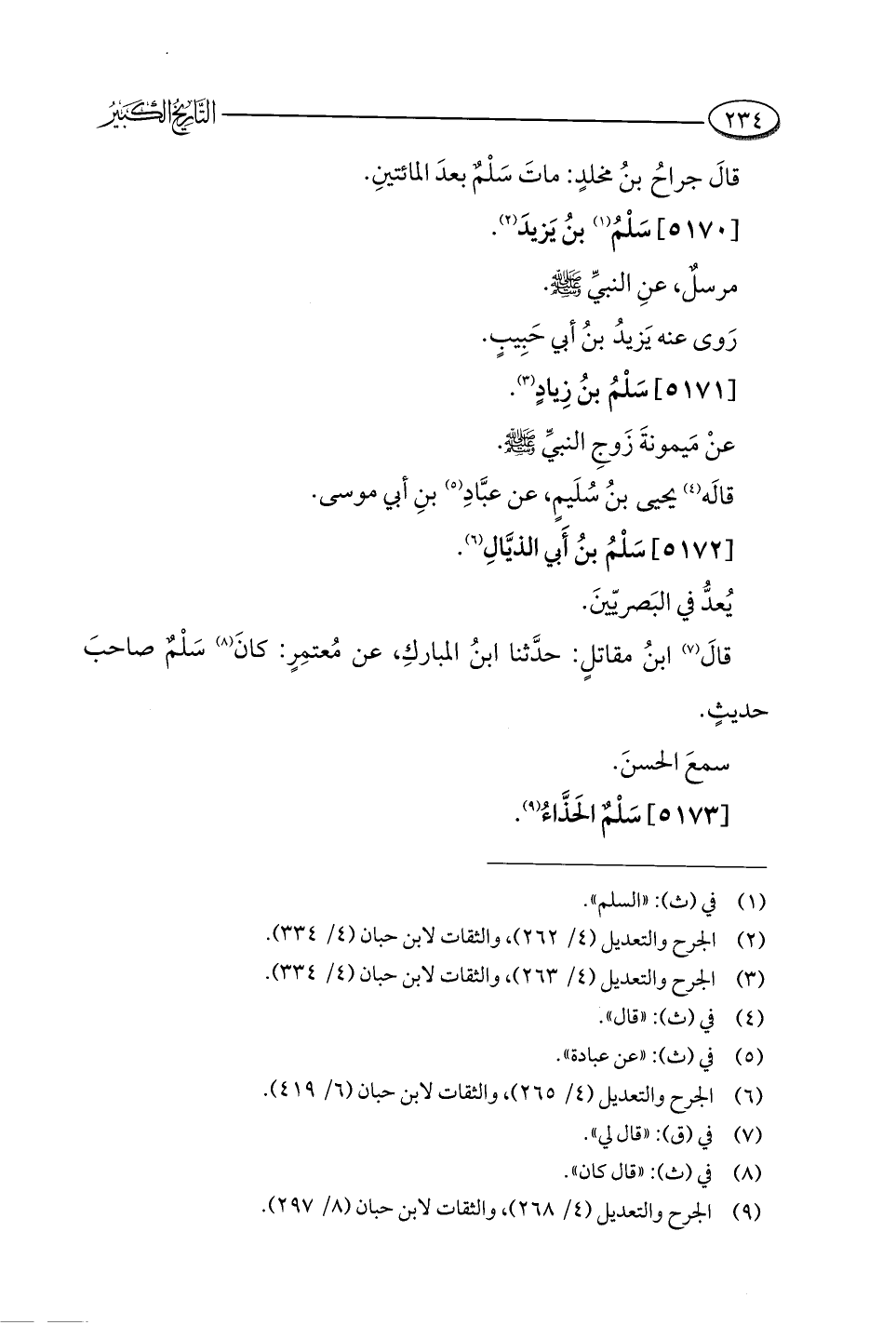 قالَ جراحُ بنُ مخلدٍ: ماتَ سَلْمٌ بعدَ المائتينِ.