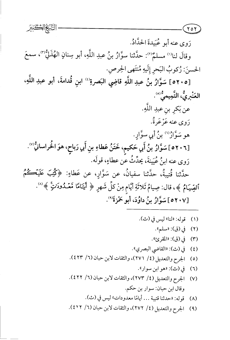 [٥٢٠٥] سَوَّارُ بنُ عبدِ اللَّهِ قاضِي البَصرةِ (¬٤) ابنِ قُدامةَ، أَبُو عبدِ اللَّهِ، العَنْبريُّ، التَّمِيميُّ (¬٥).