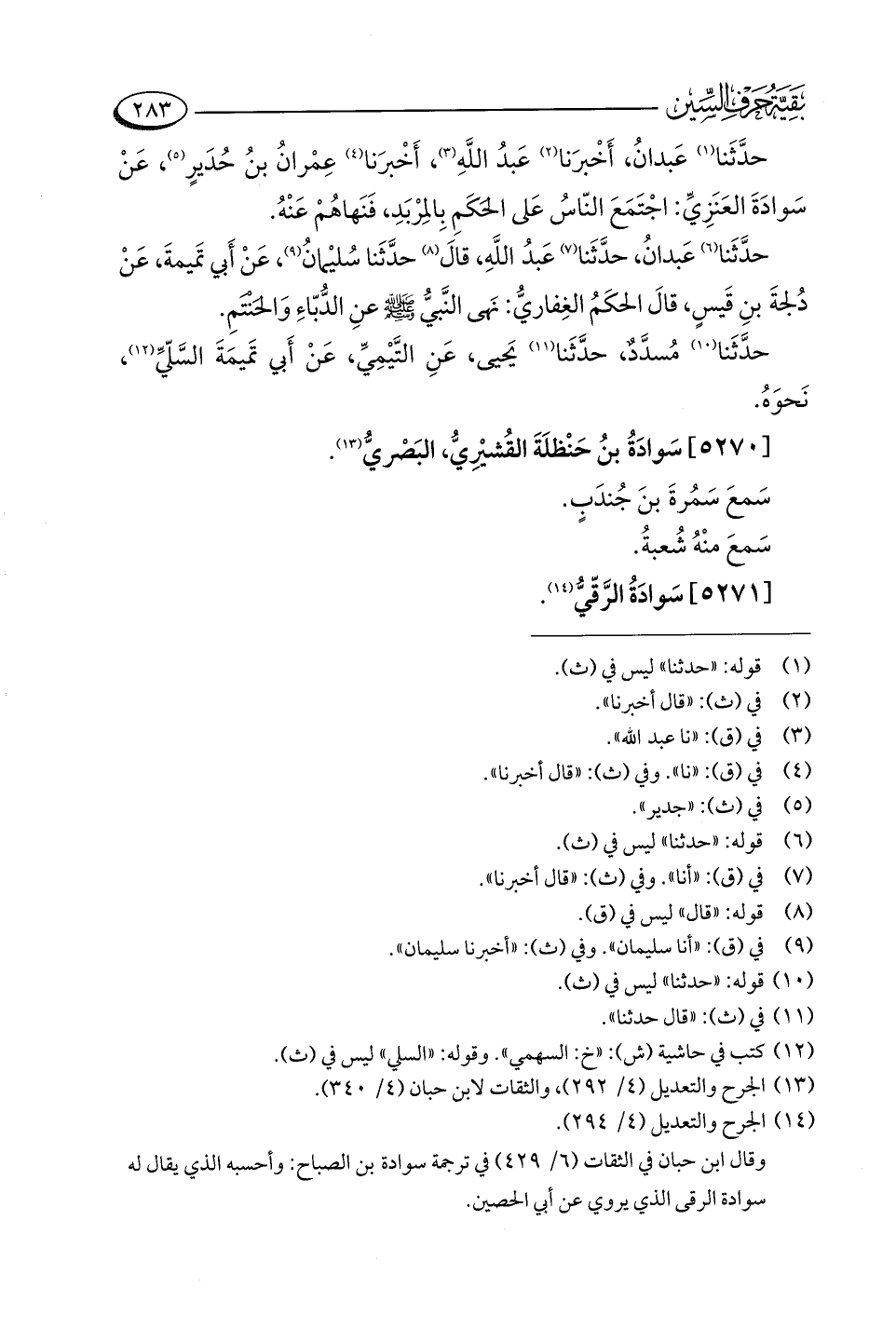 وقال ابن حبان في الثقات (٦/ ٤٢٩) في ترجمة سوادة بن الصباح: وأحسبه الذي يقال له سوادة الرقى الذي يروي عن أبي الحصين.