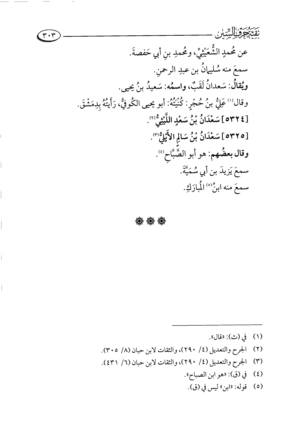 ويُقالُ: سَعدانُ لَقَبٌ، واسمُه: سَعيدُ بنُ يحيى.