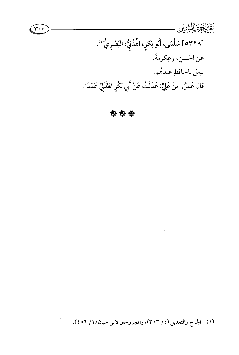قال عَمرُو بنُ عِليٍّ: عَدَلْتُ عَنْ أَبِي بَكْرٍ الهُذَلِيِّ عَمْدًا.