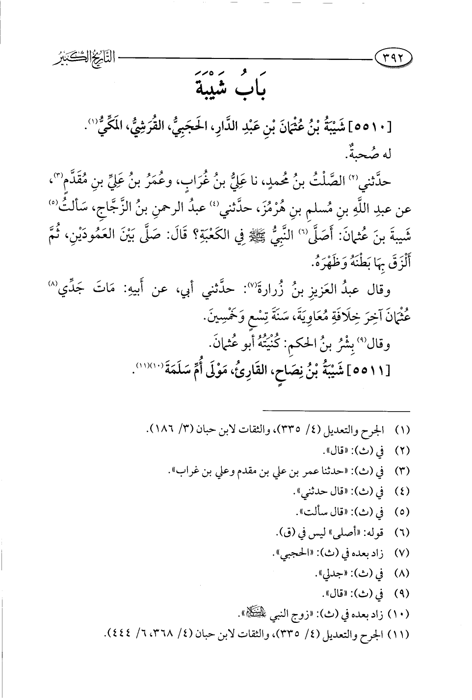 [٥٥١٠] شَيْبَةُ بْنُ عُثْمانَ بْنِ عَبْدِ الدَّارِ، الحَجَبِيُّ، القُرَشِيُّ، المَكِّيُّ (¬١).