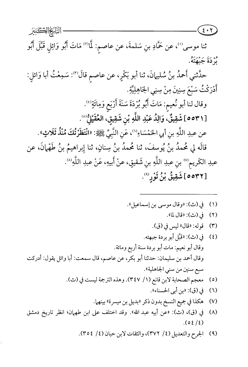حدَّثني أَحمدُ بنُ سُليمانَ، ثنا أبو بَكْرٍ، عن عاصمٍ قالَ (¬٣): سَمِعْتُ أبا وَائلٍ: أَدْرَكْتُ سَبْعَ سِنِينَ مِنْ سِنِي الجَاهِلِيَّةِ.