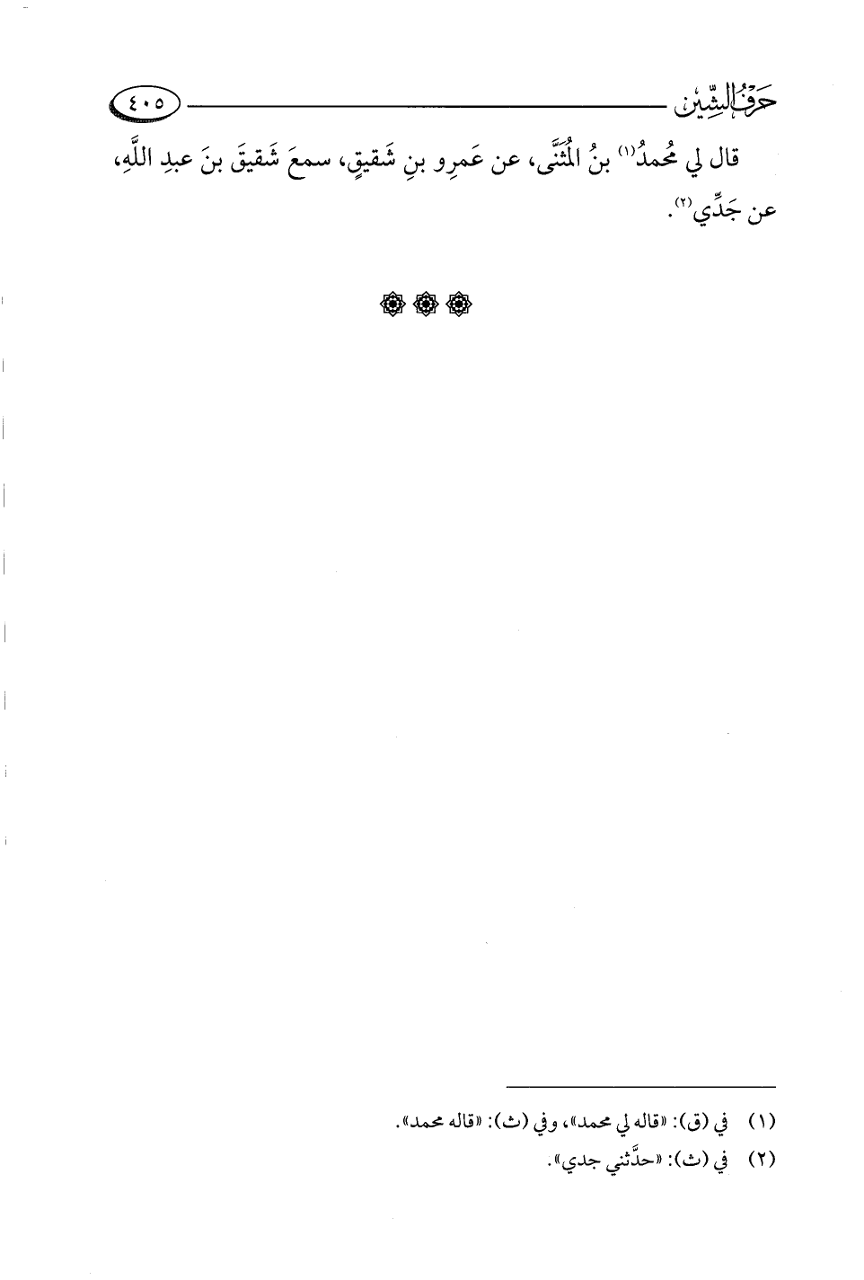 قال لي مُحمدُ (¬١) بنُ المُثَنَّى، عن عَمرِو بنِ شَقيقٍ، سمعَ شَقيقَ بنَ عبدِ اللَّهِ، عن جَدِّي (¬٢).
