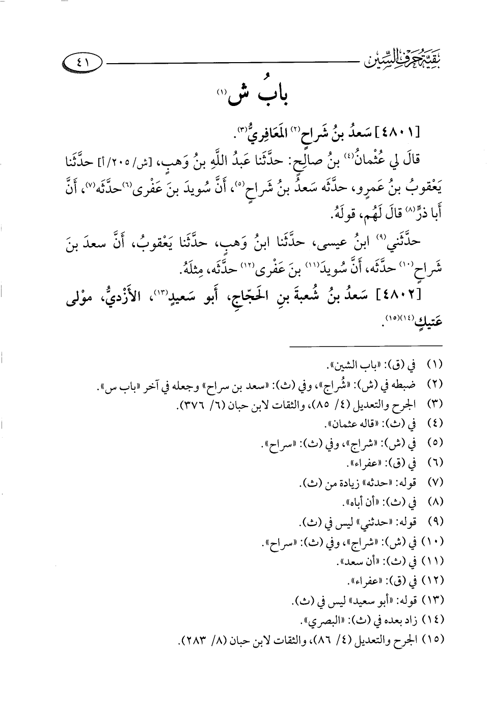 [٤٨٠٢] سَعدُ بنُ شُعبةَ بنِ الحَجَّاجِ، أَبو سَعيدٍ (¬١٣)، الأَزْديُّ، موْلى عَتيكٍ (¬١٤) (¬١٥).