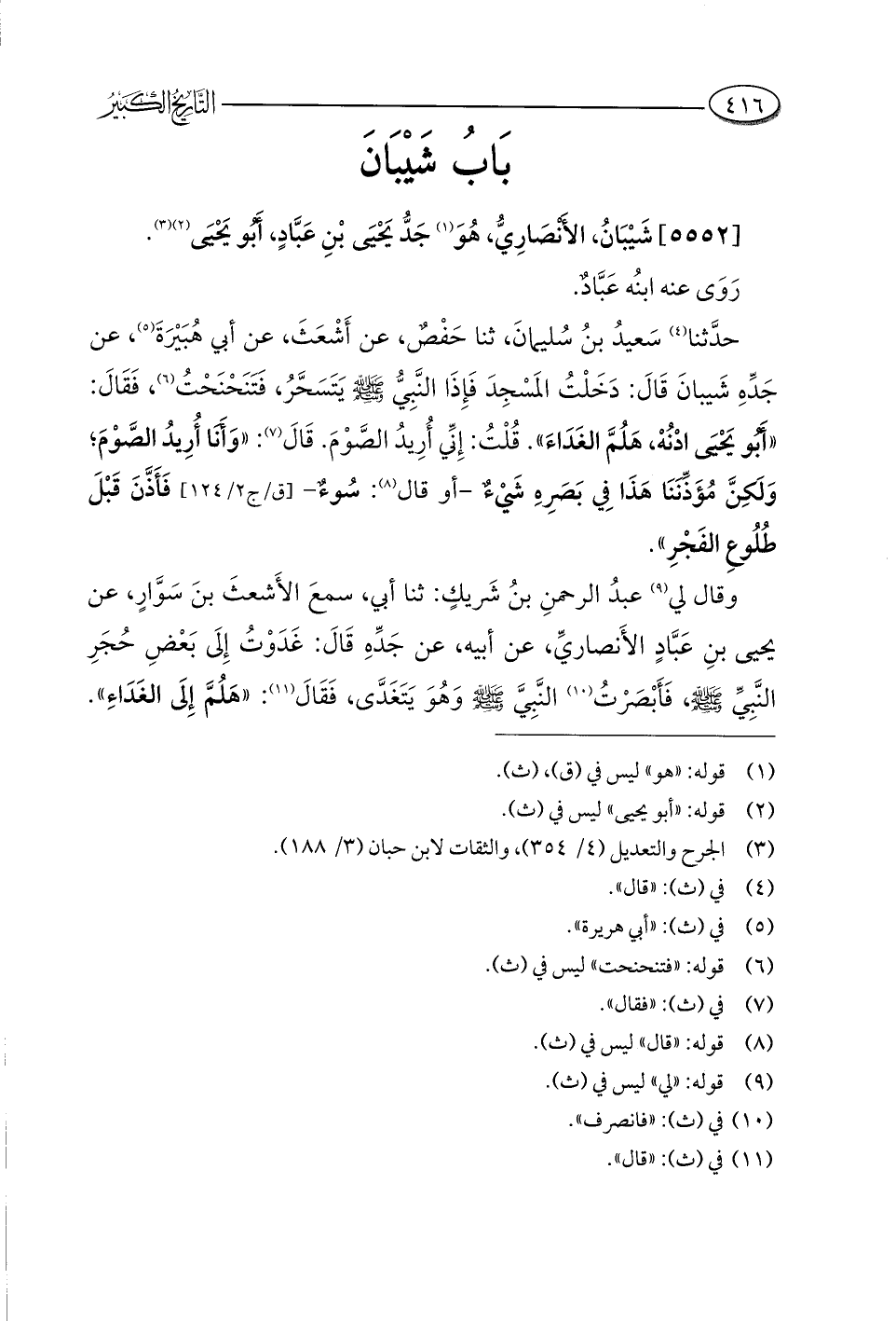 [٥٥٥٢] شَيْبَانُ، الأَنْصَارِيُّ، هُوَ (¬١) جَدُّ يَحْيَى بْنِ عَبَّادٍ، أَبُو يَحْيَى (¬٢) (¬٣).