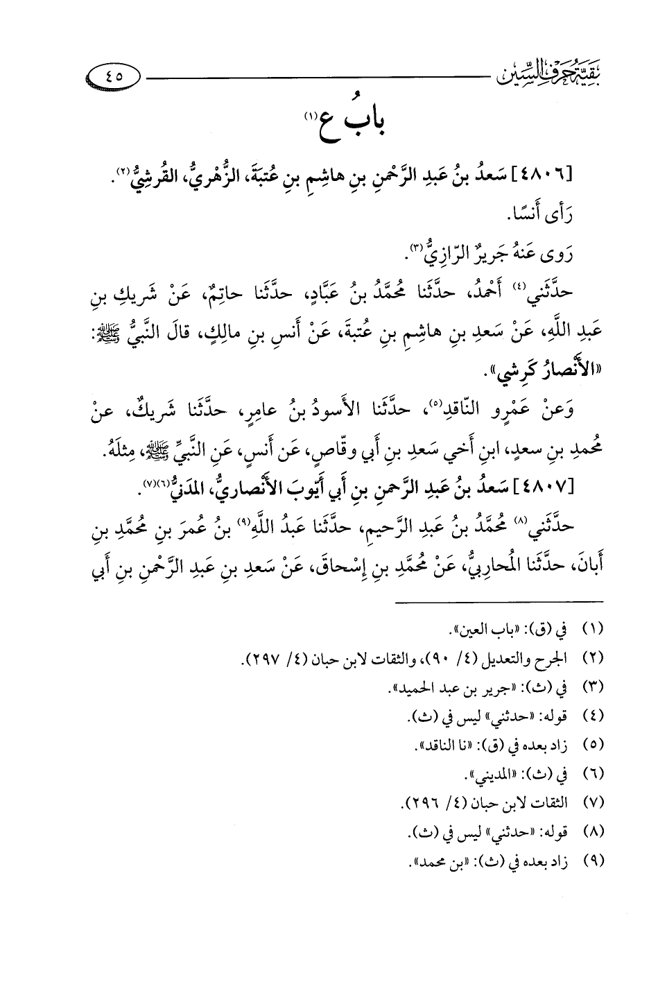 [٤٨٠٦] سَعدُ بنُ عَبدِ الرَّحْمن بنِ هاشِمِ بنِ عُتبَةَ، الزُّهْريُّ، القُرشِيُّ (¬٢).