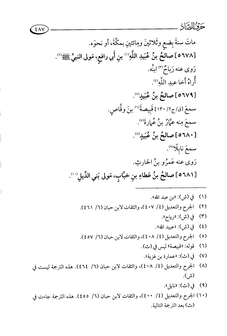 (¬٥) الجرح والتعديل (٤/ ٤٠٨)، والثقات لابن حبان (٦/ ٤٥٧).