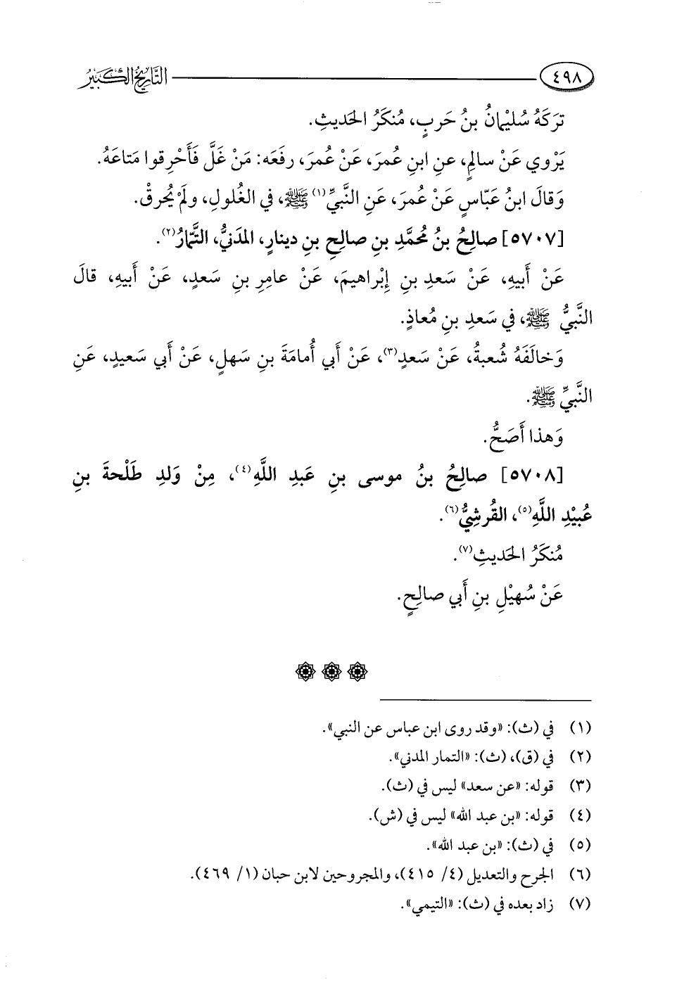 [٥٧٠٨] صالِحُ بنُ موسى بنِ عَبدِ اللَّهِ (¬٤)، مِنْ وَلدِ طَلْحةَ بنِ عُبيْدِ اللَّهِ (¬٥)، القُرشِيُّ (¬٦).