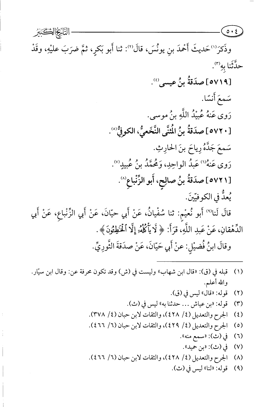 [٥٧٢٠] صدَقةُ بنُ المُثنَّى النَّخَعيُّ، الكوفِيُّ (¬٥).
