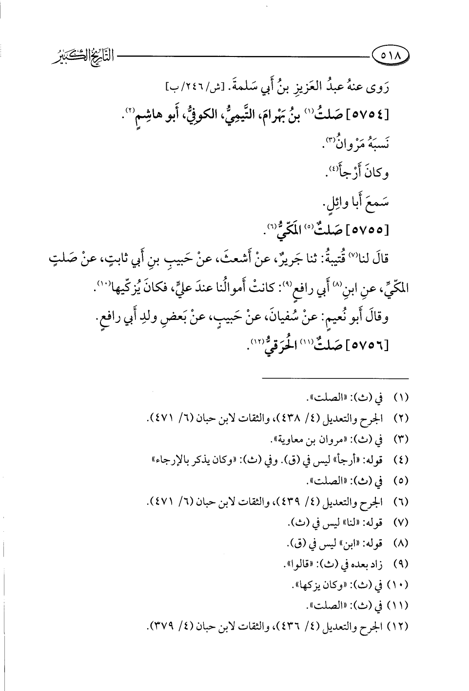 [٥٧٥٤] صَلتُ (¬١) بنُ بَهْرامَ، التَّيمِيُّ، الكوفِيُّ، أَبو هاشِمٍ (¬٢).