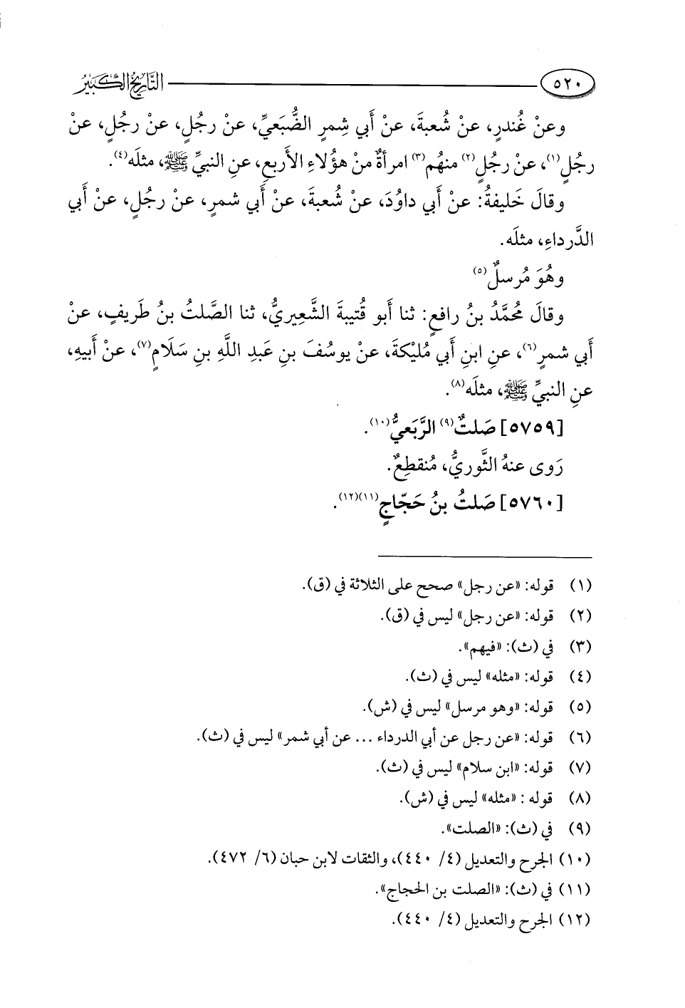 (¬١٢) الجرح والتعديل (٤/ ٤٤٠).