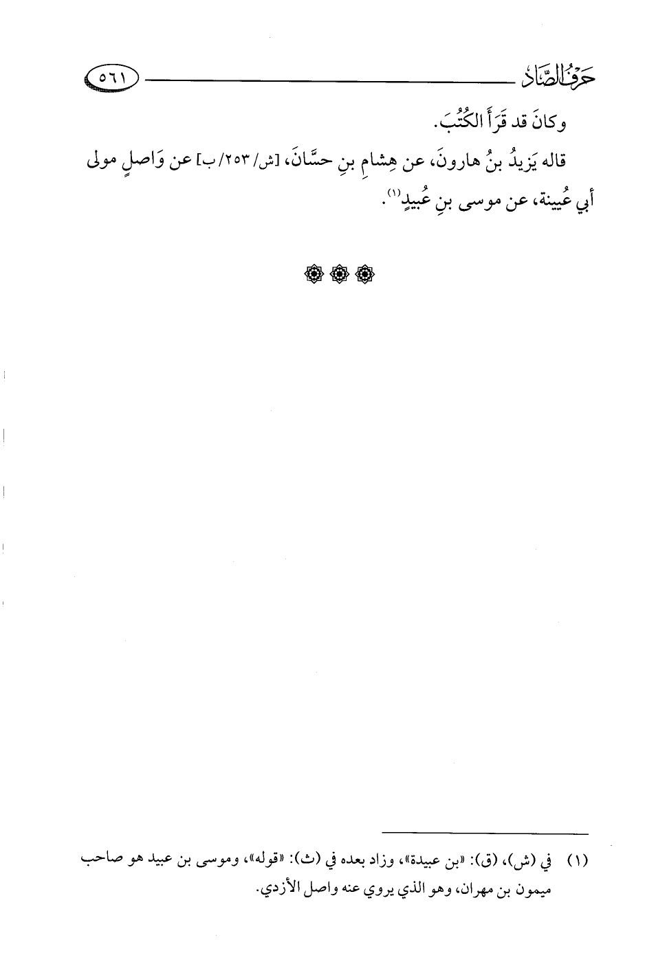 (¬١) في (ش)، (ق): "بن عبيدة"، وزاد بعده في (ث): "قوله"، وموسى بن عبيد هو صاحب ميمون بن مهران، وهو الذي يروي عنه واصل الأزدي.