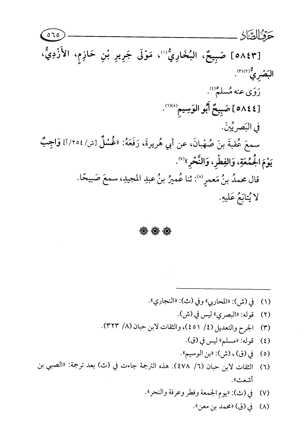 [٥٨٤٣] صَبِيحٌ، البُخَارِيُّ (¬١)، مَوْلَى جَرِيرِ بْنِ حَازِمٍ، الأَزْدِيُّ، البَصْرِيُّ (¬٢) (¬٣).