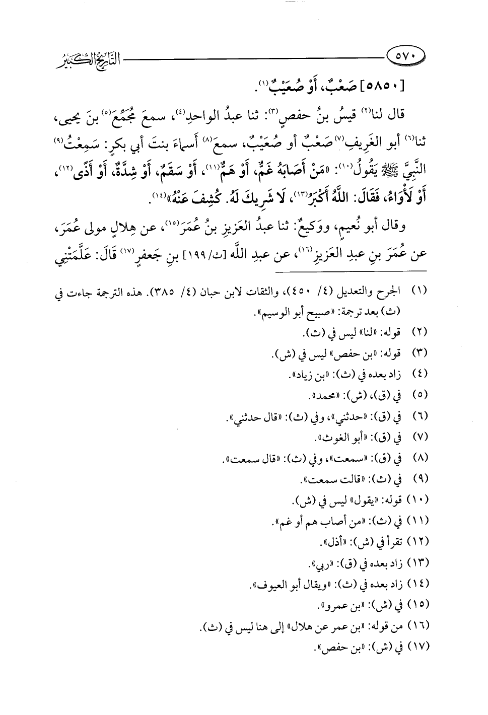 (¬١) الجرح والتعديل (٤/ ٤٥٠)، والثقات لابن حبان (٤/ ٣٨٥). هذه الترجمة جاءت في (ث) بعد ترجمة: "صبيح أبو الوسيم".