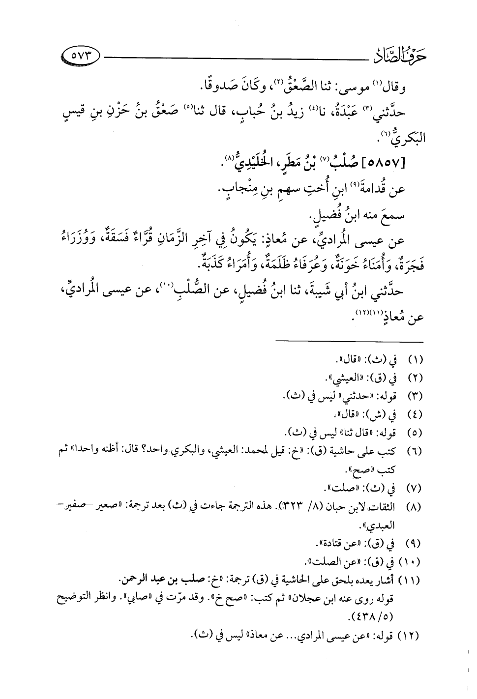 (¬٨) الثقات لابن حبان (٨/ ٣٢٣). هذه الترجمة جاءت في (ث) بعد ترجمة: "صعير - صفير - العبدي".
