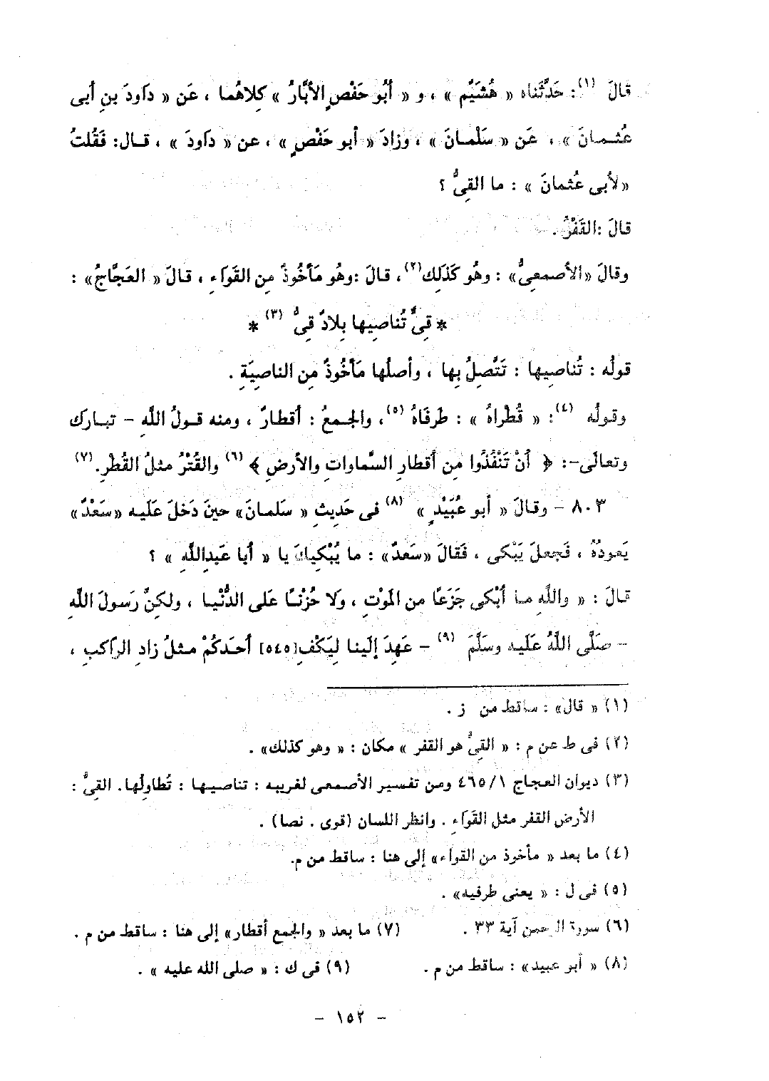 قال: حدثاه «هشيم» , و «أبو حفص الأبار» , كلاهما, عن «داود بن أبى عثمان» , عن «سلمان» , وزاد «أبو حفص» , عن «داود» , قال: فقلت «لأبى عثمان»: ما القى؟