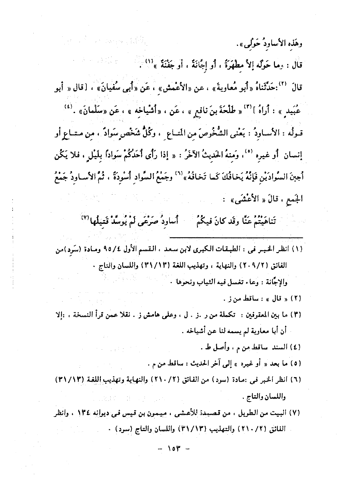 قوله: الأساود: يعنى الشخوص من المتاع, وكل شخص سواد, من متاع أو إنسان أو غيره, ومنه الحديث الآخر: «إذا رأى أحدكم سوادًا بليل, فلا يكن أجبن السوادين فإنه يخافك كما تخافه» وجمع السواد أسودة, ثم الأساود جمع الجمع, قال «الأعشى»: