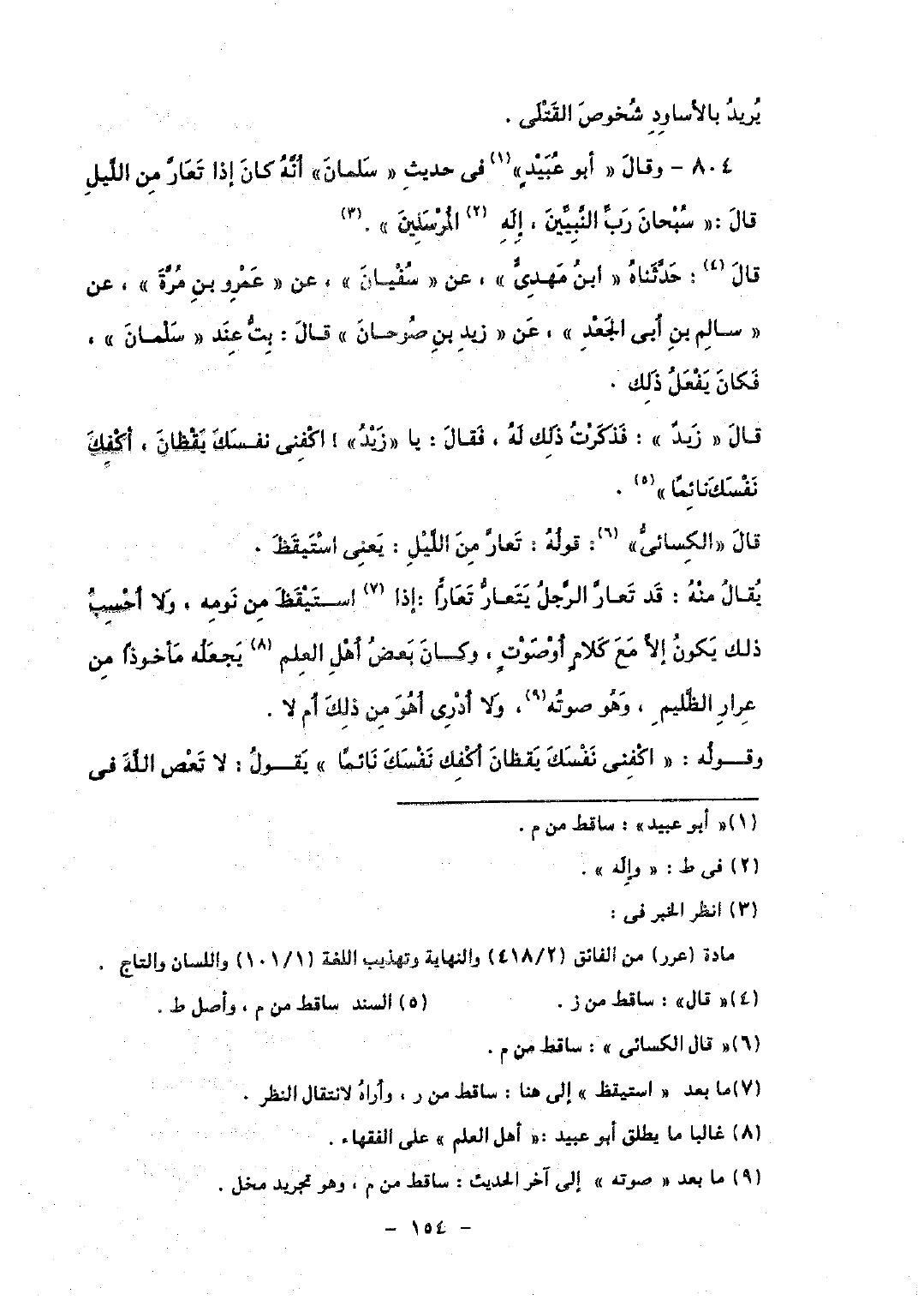 804 - وقال «أبو عبيد» في حديث «سلمان» أنه كان إذا تعار من الليل قال: «سبحان رب النبيين, إله المرسلين».