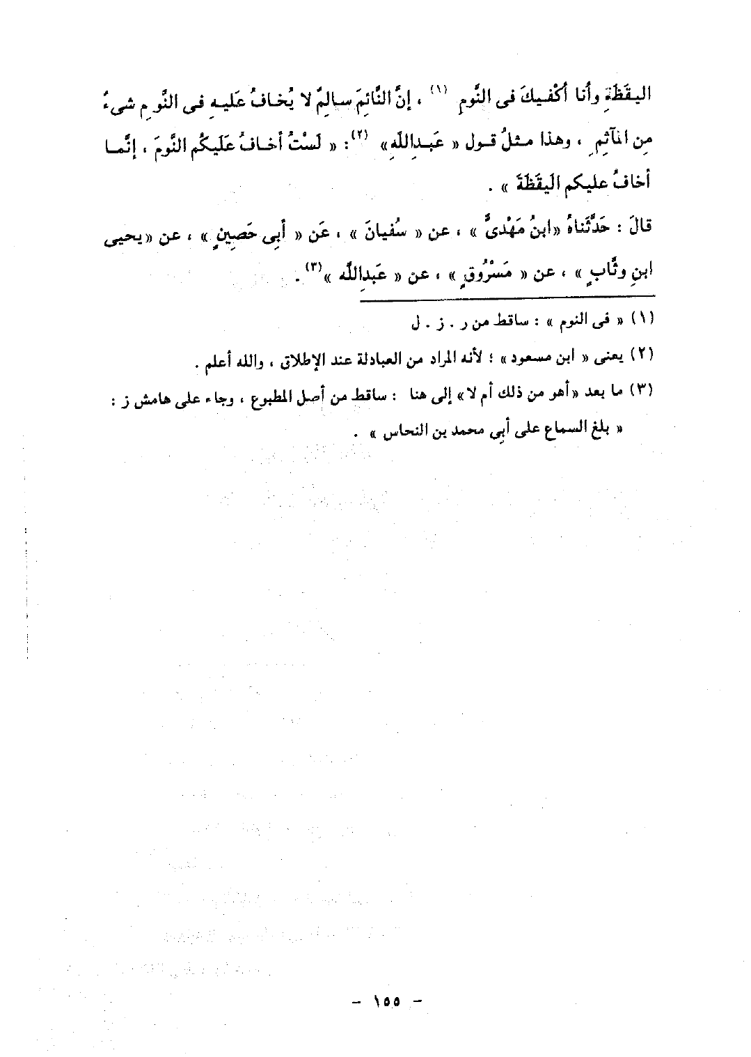 قال: حدثناه «ابن مهدى» , عن «سفيان» , عن «أبى حصين» , عن «يحيى ابن وثاب» , عن «مسروق» , عن «عبد الله».