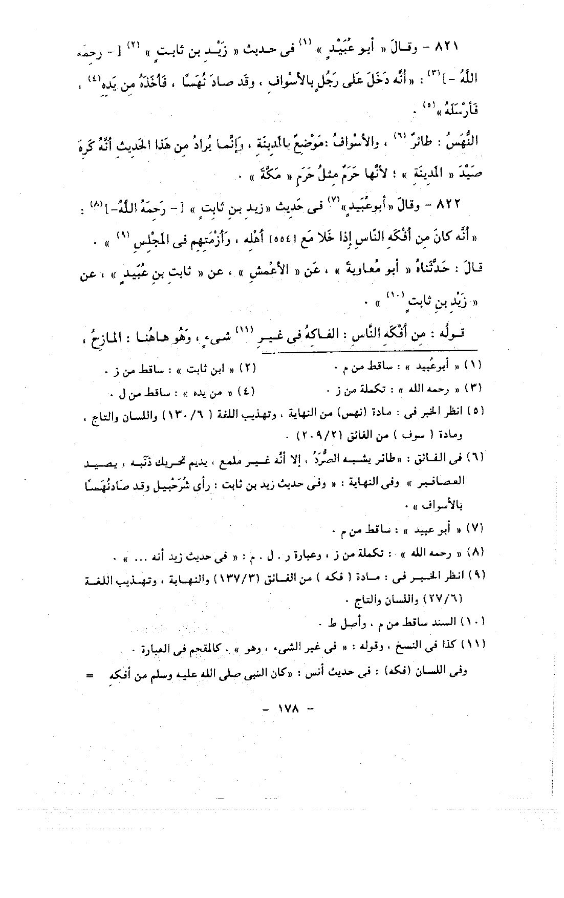 821 - وقال «أبو عبيد» في حديث «زيد بن ثابت» [- رحمه الله -]: «أنه دخل على رجل بالأسواف, وقد صاد نهسًا, فأخذه من يده, فأرسله».