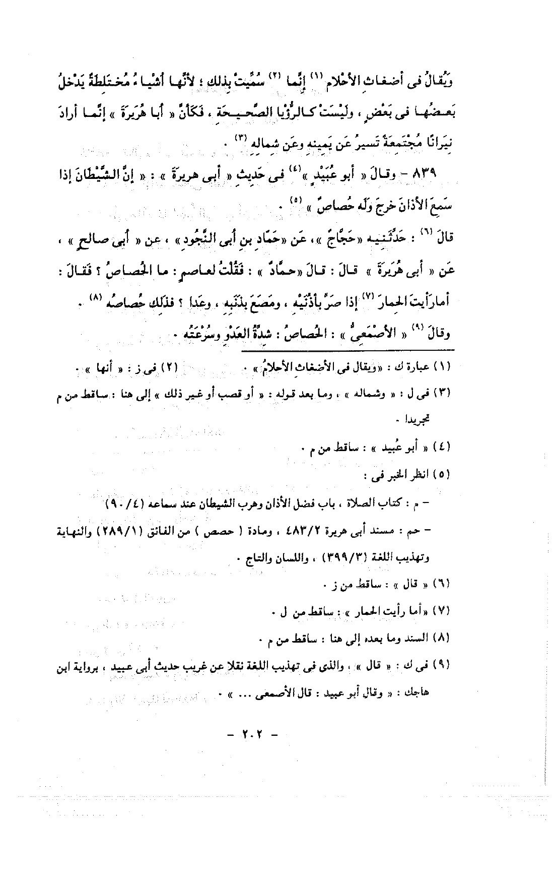 839 - وقال «أبو عبيد» في حديث «أبى هريرة»: «إن الشيطان إذا سمع الأذان خرج وله خصائص».