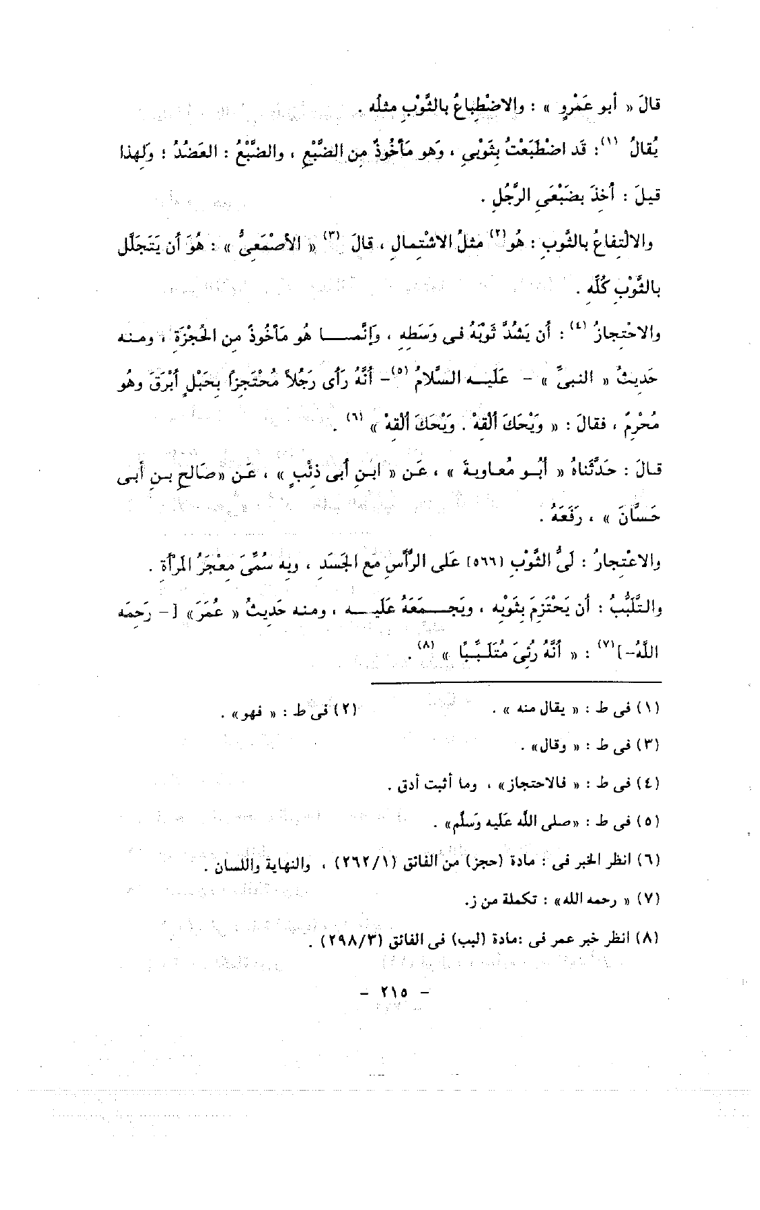 والاحتجاز: أن يشد ثوبه في وسطه, وإنما هو مأخوذ من الحجرة, ومنه حديث «النبى» - عليه السلام - أنه رأى رجلًا محتجزًا بحيل أبرق وهو محرم, فقال: «ويحك ألقه. ويحك ألقه».