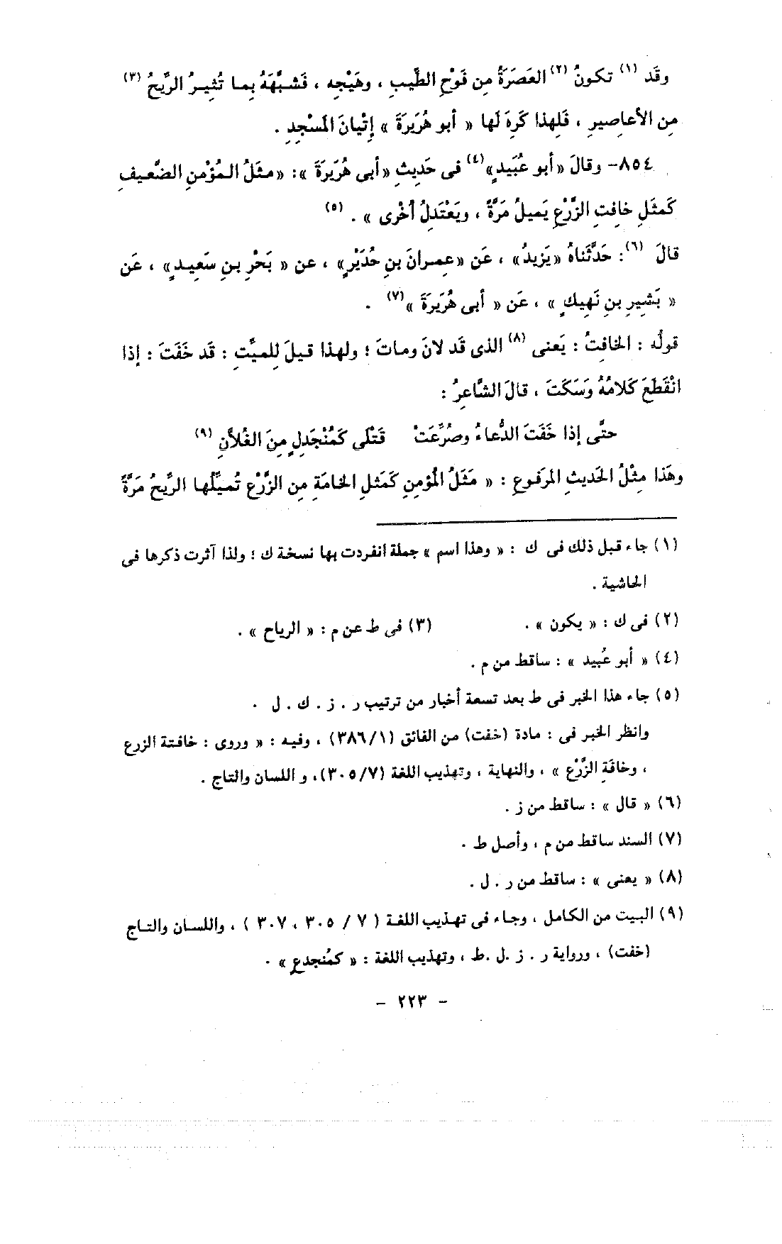 854 - وقال «أبو عبيد» فى حديث «أبى هريرة»: «مثل المؤمن الضعيف كمثل خافت الزرع يميل مرة, ويعتدل أخرى».