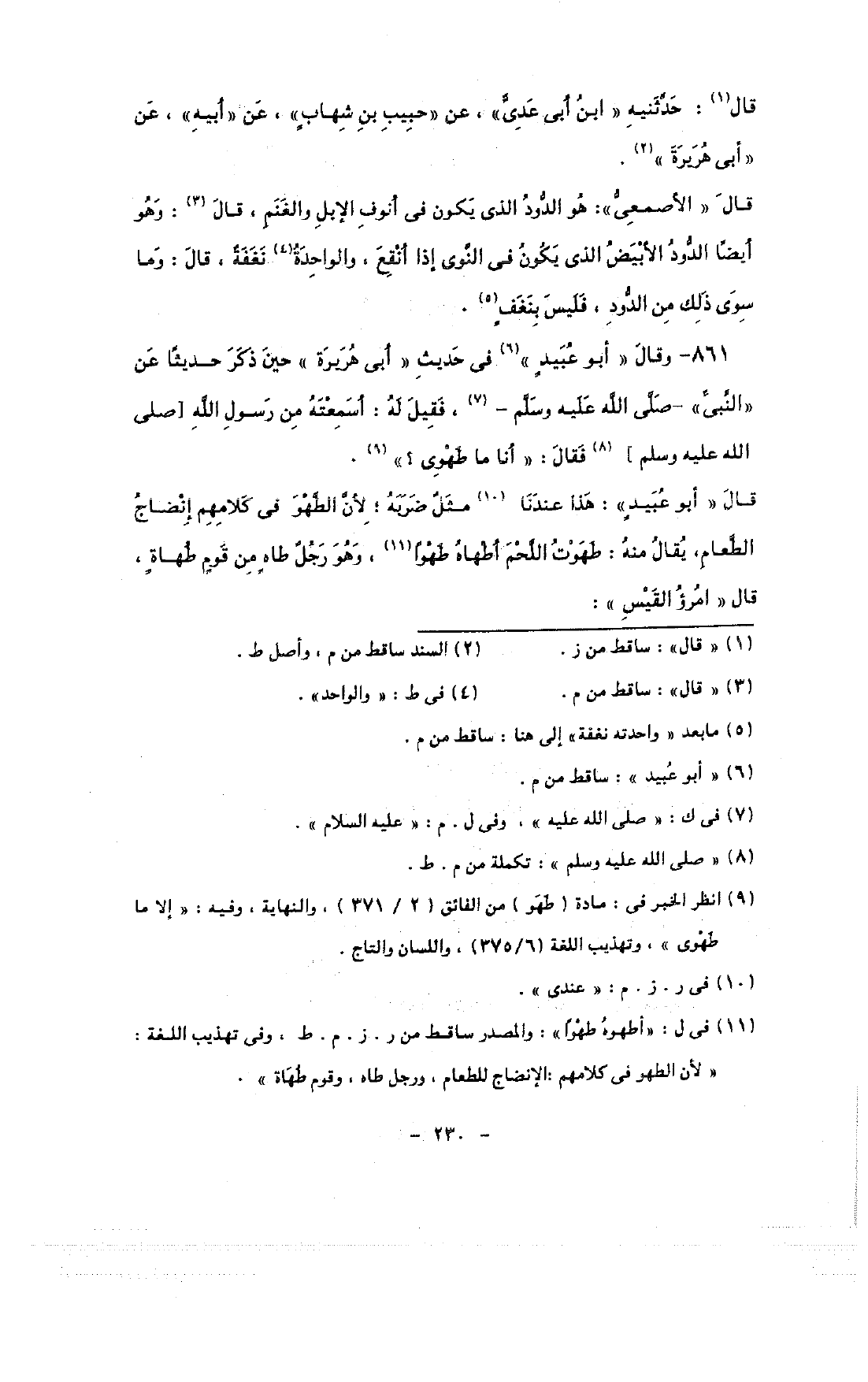 861 - وقال «أبو عبيد» في حديث «أبى هريرة» حين ذكر حديثًا عن «النبى» - صلى الله عليه وسلم -, فقيل له: أسمعته من رسول الله [صلى الله عليه وسلم] فقال: «أنا من طهوى؟ ».