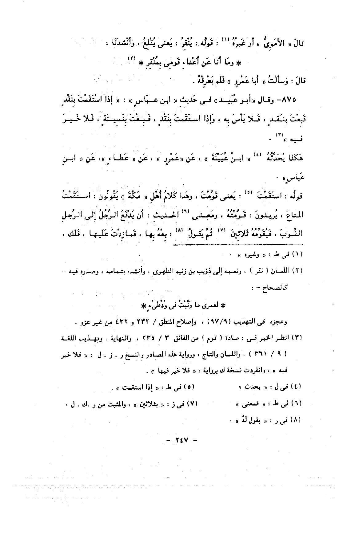 875 - وقال «أبو عبيد» في حديث «ابن عباس»: «إذا استقمت بنقد فبعت بنقد, فلا بأس به, وإذا استقمت بنقد, فبعت بنسيئة, فلا خير فيه».