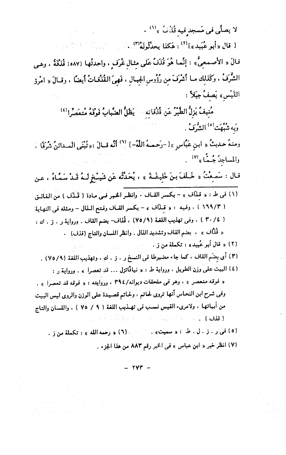 قال «الأصمعى»: إنما هو قذف على مثال غرف, واحدتها [587] قذفة, وهى الشرف, وكذلك ما أشرف من رؤوس الجبال, فهى القذفات أيضًا, وقال «امرؤ القيس» يصف جبلًا.