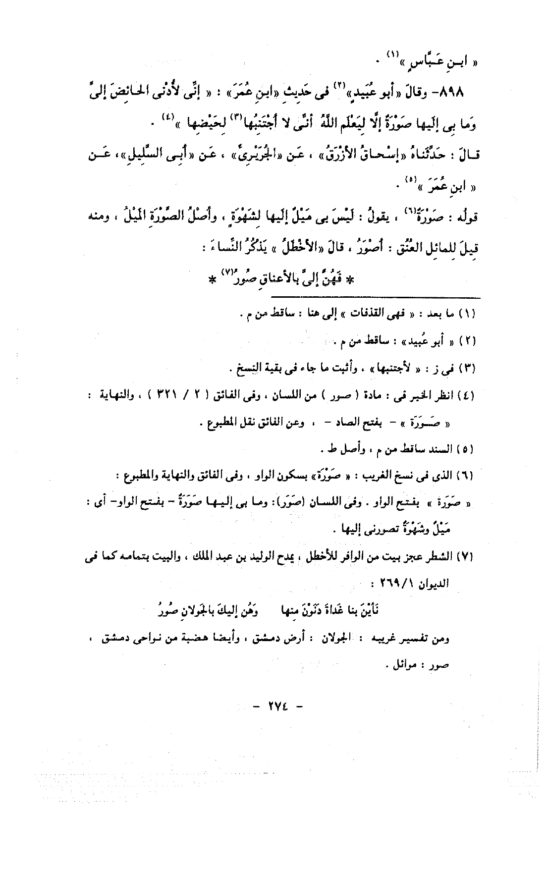 898 - وقال «أبو عبيد» في حديث «ابن عمر»: «إنى لأدنى الحائض إلى وما بى إليها صورة إلا ليعلم الله أنى لا أجتنبها لحيضها».