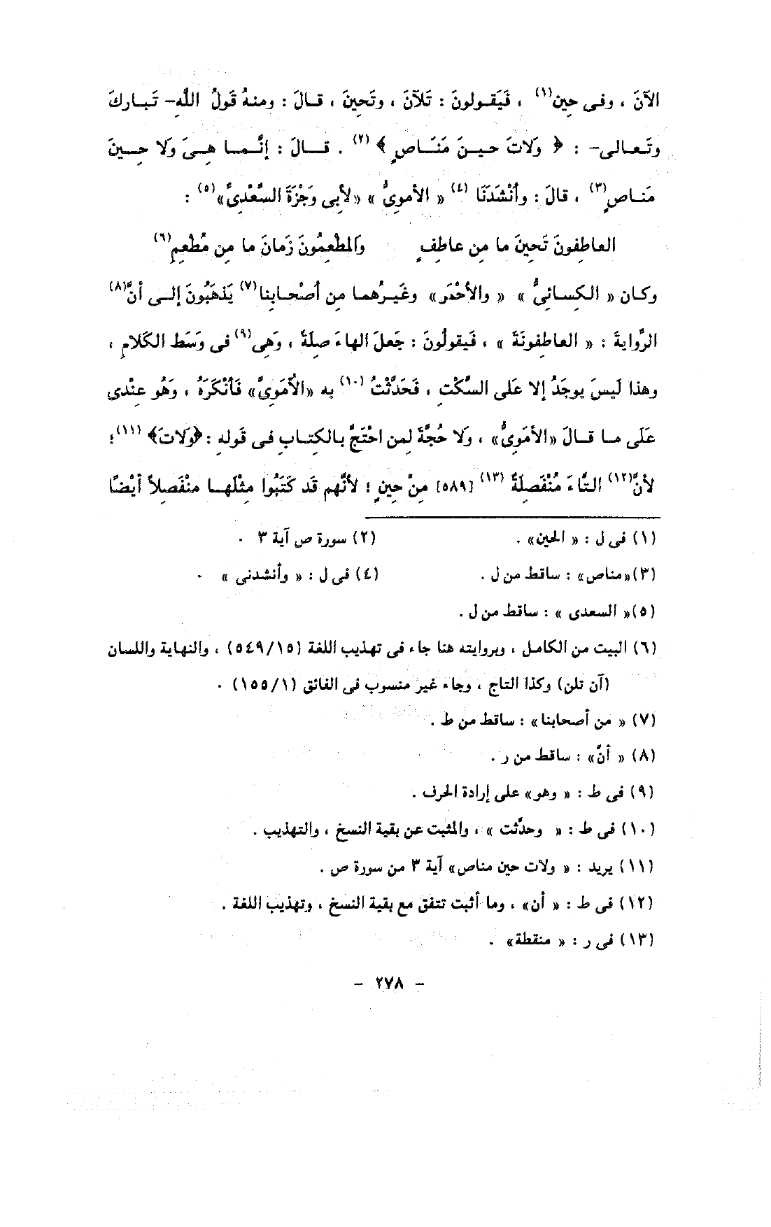 وكان «الكسائى» «والأحمر» وغيرهما من أصحابنا يذهبون إلى أن الرواية: «العاطفونة» , فيقولون: جعل الهاء صلة, وهى في وسط الكلام, وهذا ليس يوجد إلا على السكت, فحدثت به «الأموى» فأنكره, وهو عندى على ما قال «الأموى» , ولا حجة لمن احتج بالكتاب في قوله {ولات} , لأن التاء منفصلة [589] من حين, لأنهم قد كتبوا مثلها منفصلًا أيضًا