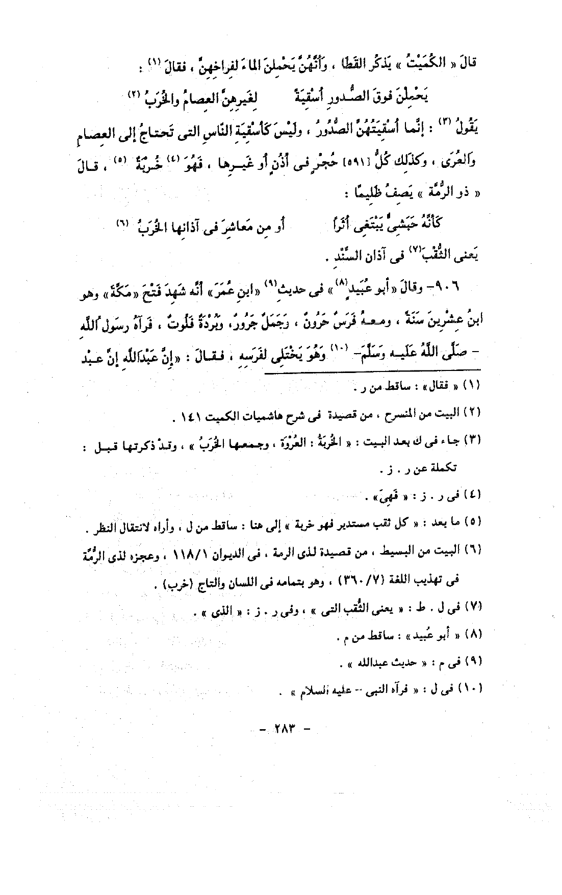 يقول: إنما استقيتهن الصدور, وليس كأسقية الناس التى تحتاج إلى العصام والعرى, وكذلك كل [591] حجر في أذن أو غيرها, فهو خربة, قال «ذو الرمة» يصف ظليمًا: