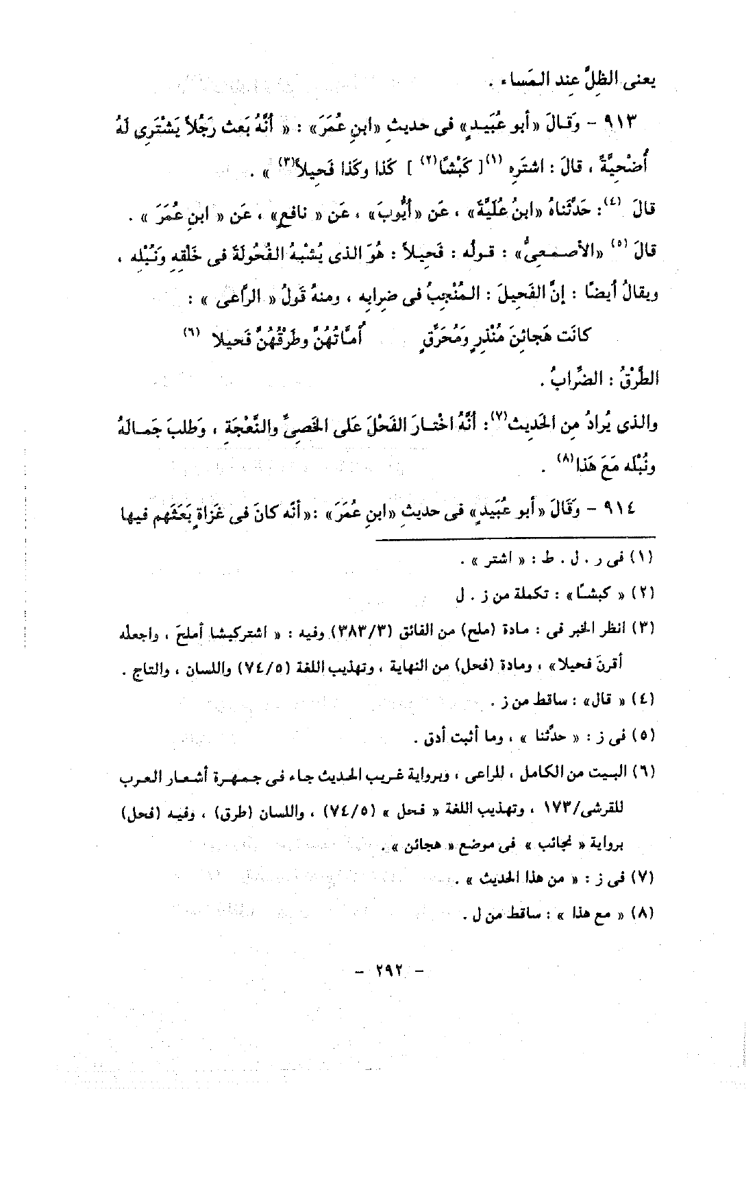 913 - وقال «أبو عبيد» فى حديث «ابن عمر»: «أنه بعث رجلًا يشترى له أضحية, قال: اشتراه [كبشًا] كذا وكذا فحيلا».