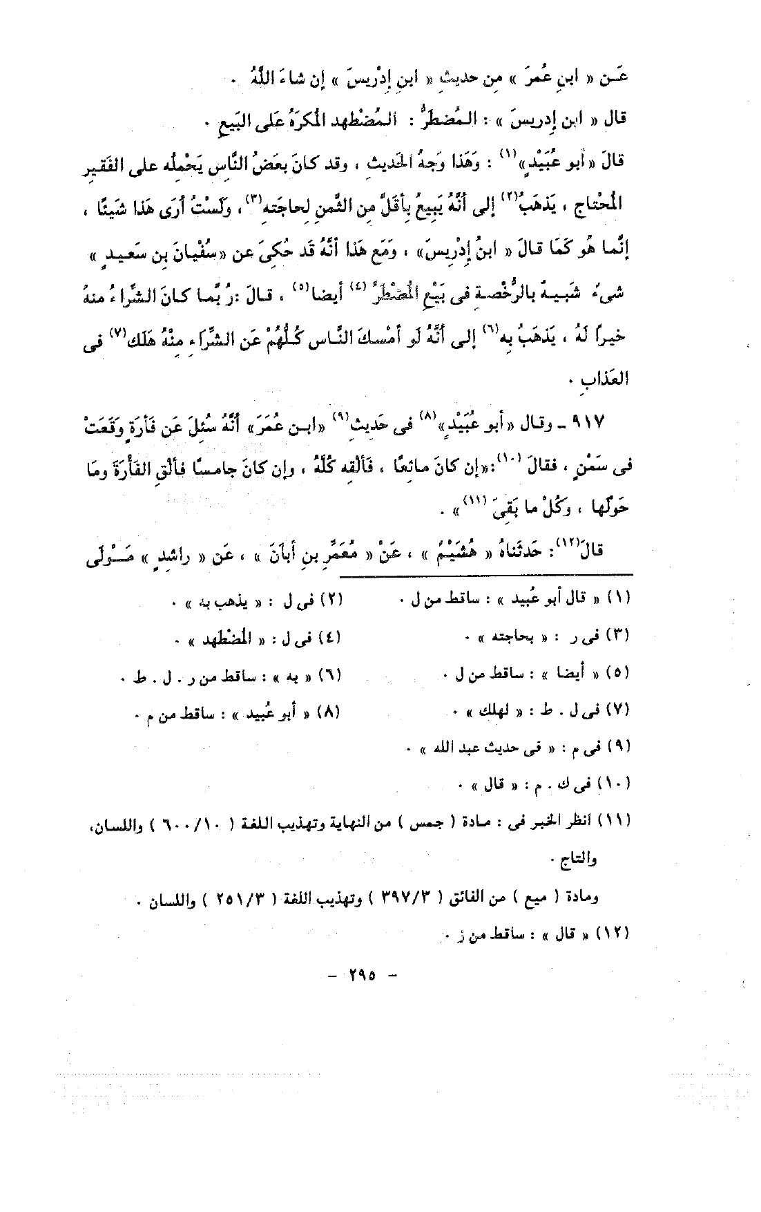 قال «أبو عبيد»: وهذا وجه الحديث, وقد كان بعض الناس يحمله على الفقير المحتاج, يذهب إلى أنه يبيع بأقل من الثمن لحاجته, ولست أرى هذا شيئًا, إنما هو كما قال «ابن إدريس» , ومع هذا أنه قد حكى عن «سفيان بن سعيد» شئ شبيه بالرخصة في بيع المضطر أيضا, قال: ربما كان الشراء منه خيرًا له, يذهب به إلى أنه لو أمسك الناس كلهم عن الشراء منه هلك فى العذاب.