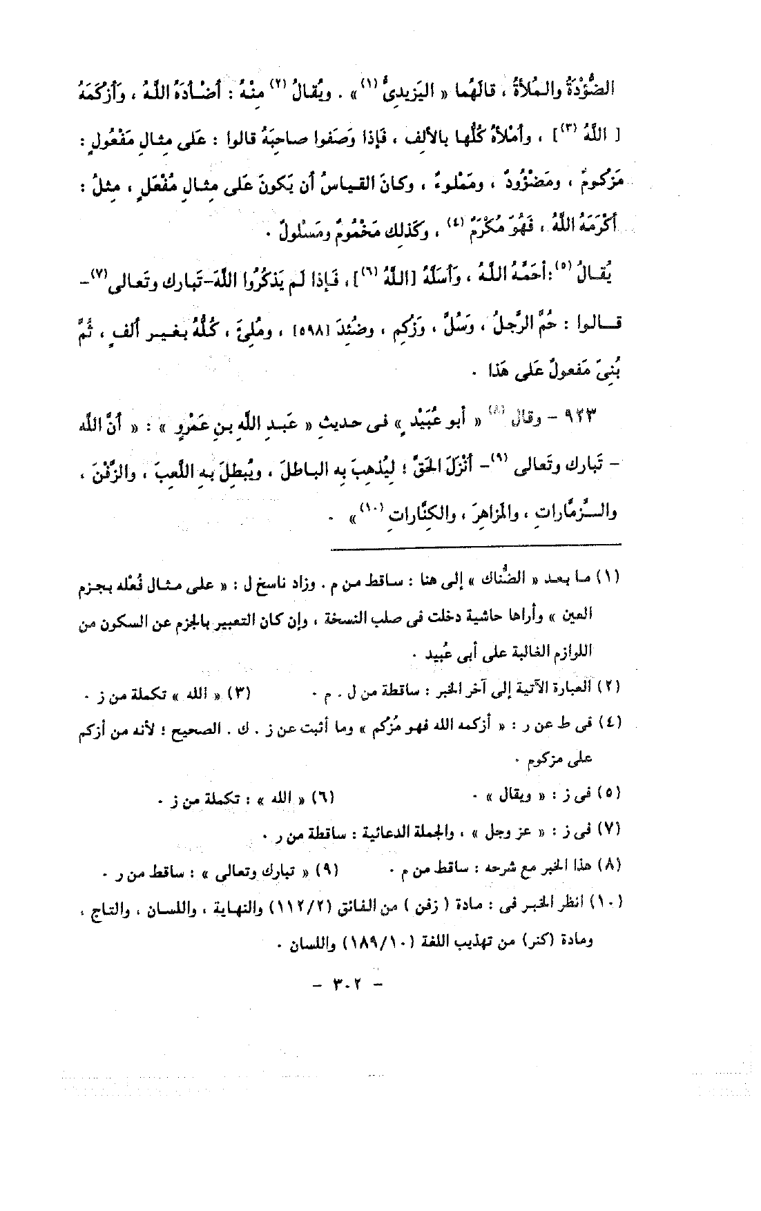 923 - وقال «أبو عبيد» فى حديث «عبد الله بن عمرو»: «أن الله - تبارك وتعالى - أنزل الحق, ليذهب به الباطل, ويبطل به اللعب, والزفن, والزمارات, والمزاهر, والكنارات».