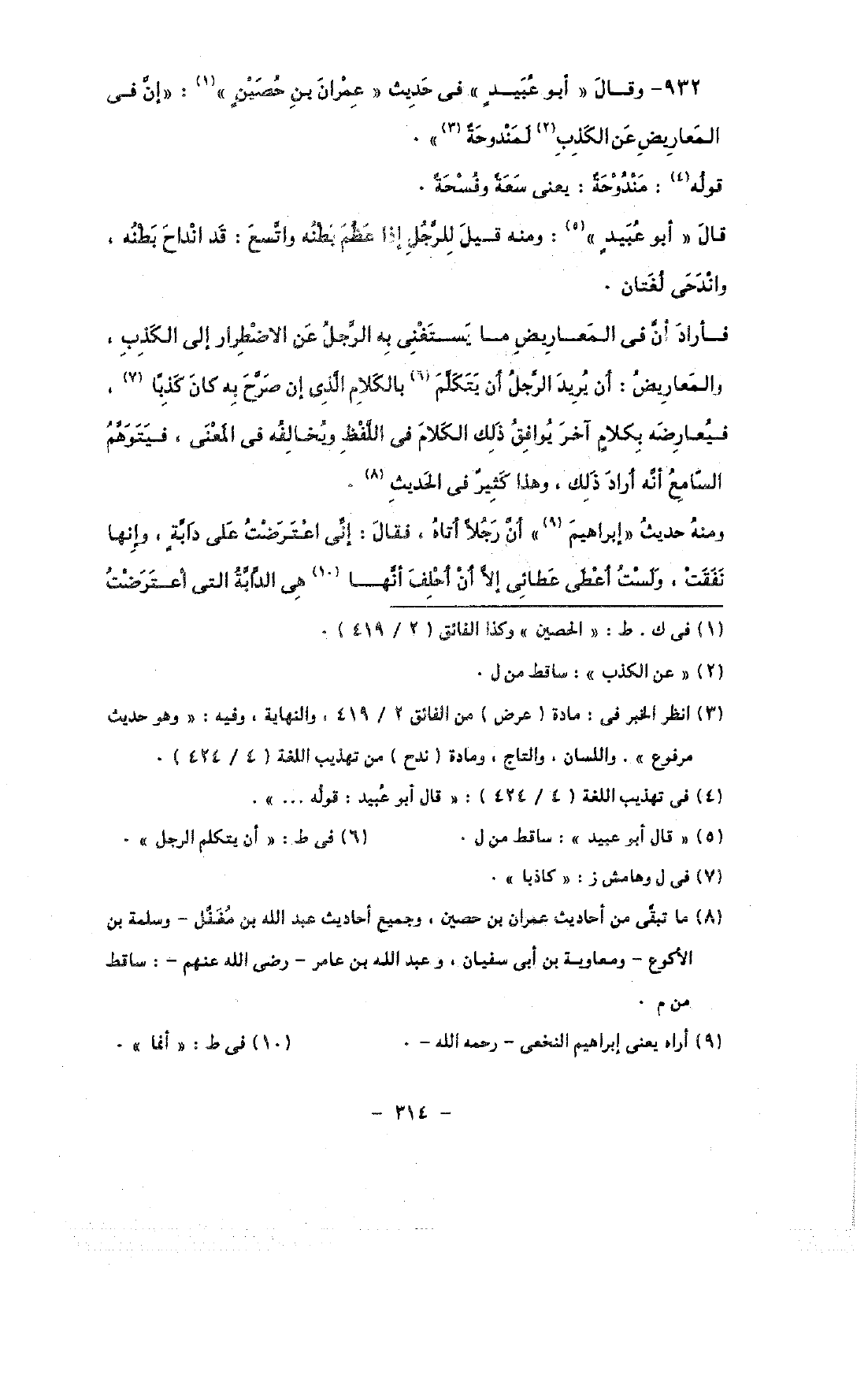 932 - وقال «أبو عبيد» فى حديث «عمران بن حصين»: «إن فى المعارض عن الكذاب لمندوحة».