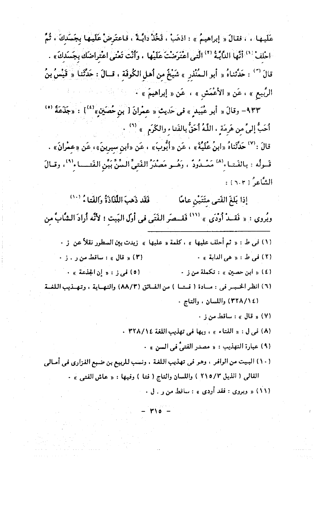 933 - وقال «أبو عبيد» فى حديث «عمران [بن حصين»]: «جذعة أحب إلى من هرمة, الله أحق بالفتاء والكرم».