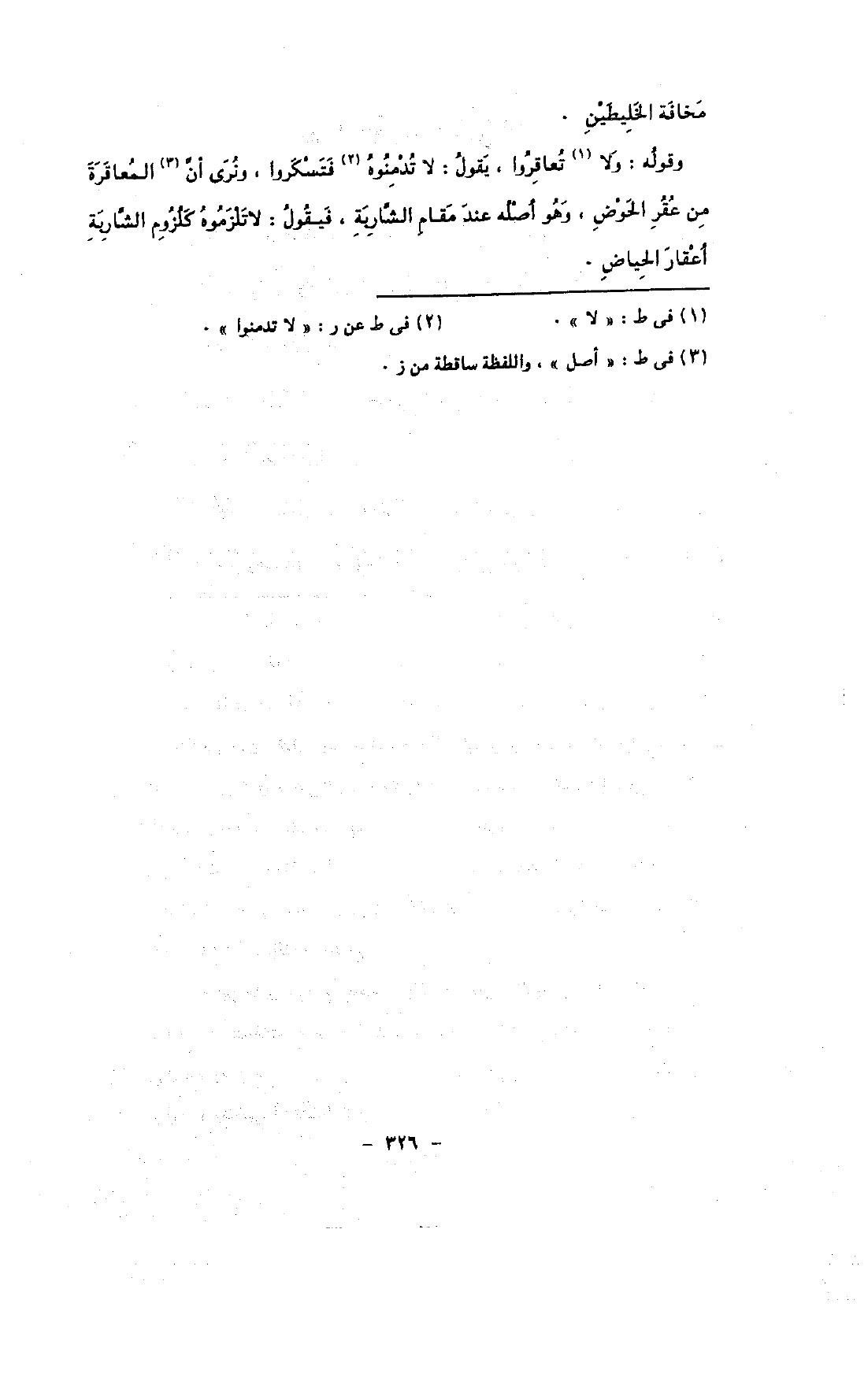 وقوله: ولا تعاقروا, يقول: لا تدمنوه فتسكروا, ونرى أن المعاقرة من عقر الحوض, وهو أصله عند مقام الشاربة, فيقول: لا تلزموه كلزوم الشاربة أعقار الحياض.