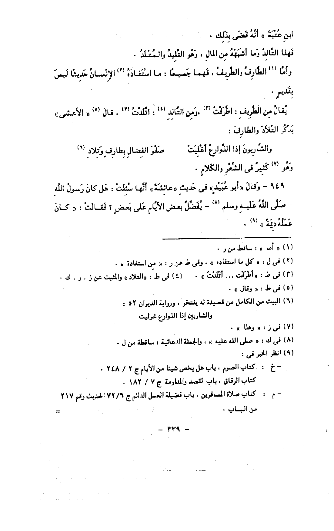 يقال من الطريق: اطرفت, ومن التالد: اتلدت, قال «الأعشى» يذكر التلاد والطارف: