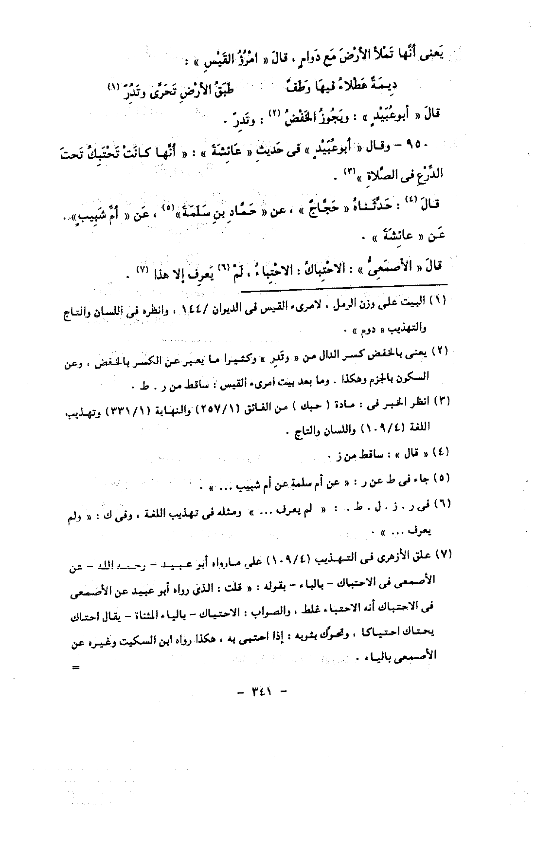 950 - وقال «أبو عبيد» فى حديث «عائشة»: «أنها كانت تحتبك تحت الدرع فى الصلاة».