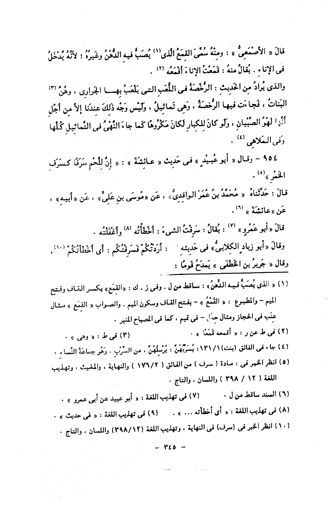 954 - وقال «أبو عبيد» فى حديث «عائش» ة: «إن للحم سرفًا كسرف الخمر».